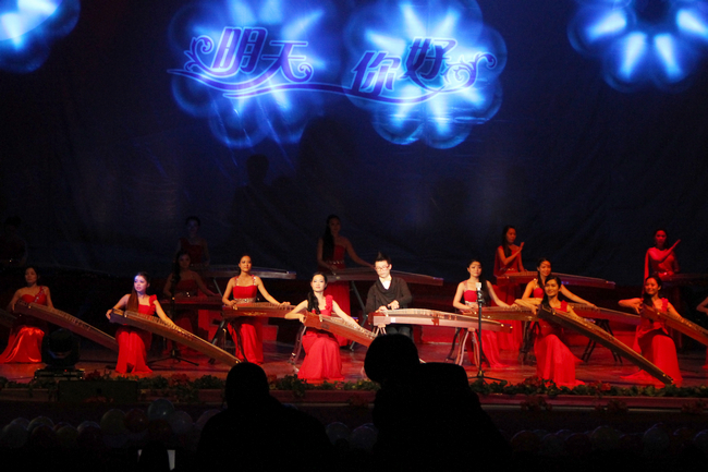 学校的舞台是音乐表演专业学生最熟悉的地方,作为科班出身的他们,唱歌跳舞无疑是小菜一碟。晚会上,独唱、联唱、合唱、乐器演奏、舞蹈、情景剧应有尽有,众多的节目构成了一台异彩纷呈的艺术盛宴。在古筝合奏《唯美中国》的节目中,学生们的倾情演奏完美地呈现了古筝曲的韵味,让我们感受到被誉为“乐中仙子”的古筝的独特魅力,不禁由筝入景,陶醉其中••••••男声独唱《父亲》演唱得高亢有力而富含感情,充分表达了一个孝心少年的心声。而舞蹈《追梦》、《毕业照》又不无显现学生舞蹈的柔美和动感十足。情景剧《我的大学》描述了大学生活大一,大二,大三的情景,剧情诙谐幽默,其中的舞蹈以激情妩媚的舞姿展现了大学生的积极向上与活力。