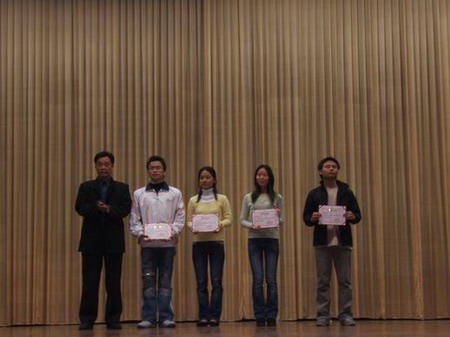 党委副书记朱冰宣读了表彰决定。接着,院党政领导分别上台为获奖的先进班集体颁发锦旗,给获得优秀大学生标兵、优秀大学生、优秀学生干部称号的先进个人颁发证书。奖学金获得者和单项奖获得者先后上台领奖。