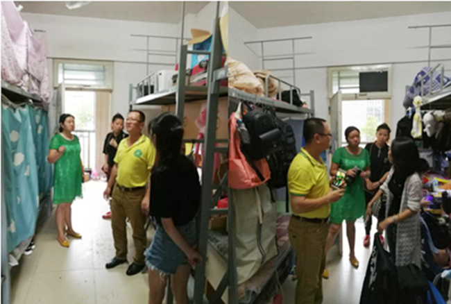 9月3日下午,机电系系主任赵天婵教授、党总支书记殷素峰老师、党总支副书记刘军老师、辅导员何珊珊老师、黄威老师来到专插本新生宿舍,探望新生,耐心细致地检查专插本新生们的宿舍情况,以确保新生们住得安心,能够尽快的适应新环境。同时还与新生们进行了亲切的交流,鼓励新生们要珍惜在校学习时光,树立远大理想。并表示不管同学们遇到任何困难,都可随时向老师们寻求帮助。