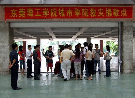 根据省教育厅《关于开展教育系统救灾捐赠活动的紧急通知》(粤教发电[2006]14号)、东莞市委办《关于开展救灾捐赠活动的紧急通知》(东委办[2006]75号)的精神,学院于7月28日上午10:00——12:00,在院四号楼大厅、校教工宿舍分别设立两个捐款点,开展救灾捐赠活动。