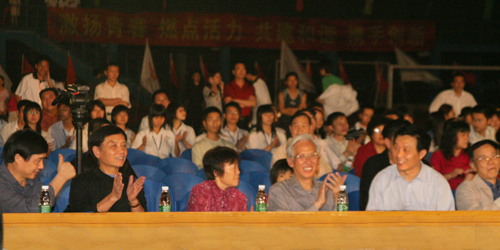 4月15日夜晚,城市学院田径场灯火通明,琴声悠扬,2007校园科技文化艺术节开幕式暨庆祝共青团成立85周年交响音乐会在这里隆重举行。