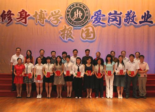 经评委打分,比赛结果当场揭晓,社科系的于佩同学以《让理想回归》力拔头筹,文艺系的余凤和管理系的陈桂玲获得二等奖,其他学生选手分获三等奖和优秀奖,教师组选手均获得纪念奖。赛后,院领导为获奖者颁奖并合影留念。
