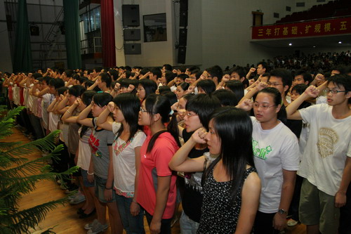 会议由党委副书记朱冰主持。会议首先举行了新党员入党宣誓仪式,共有169名大学生党员面向党旗庄严宣誓。