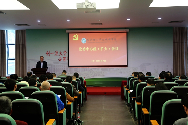 3月7日下午,学院召开党委中心组(扩大)会议。全体院领导、各单位正副职负责人、党总支(直属支部)书记、副书记参加了会议。会议由党委书记章德胜主持。