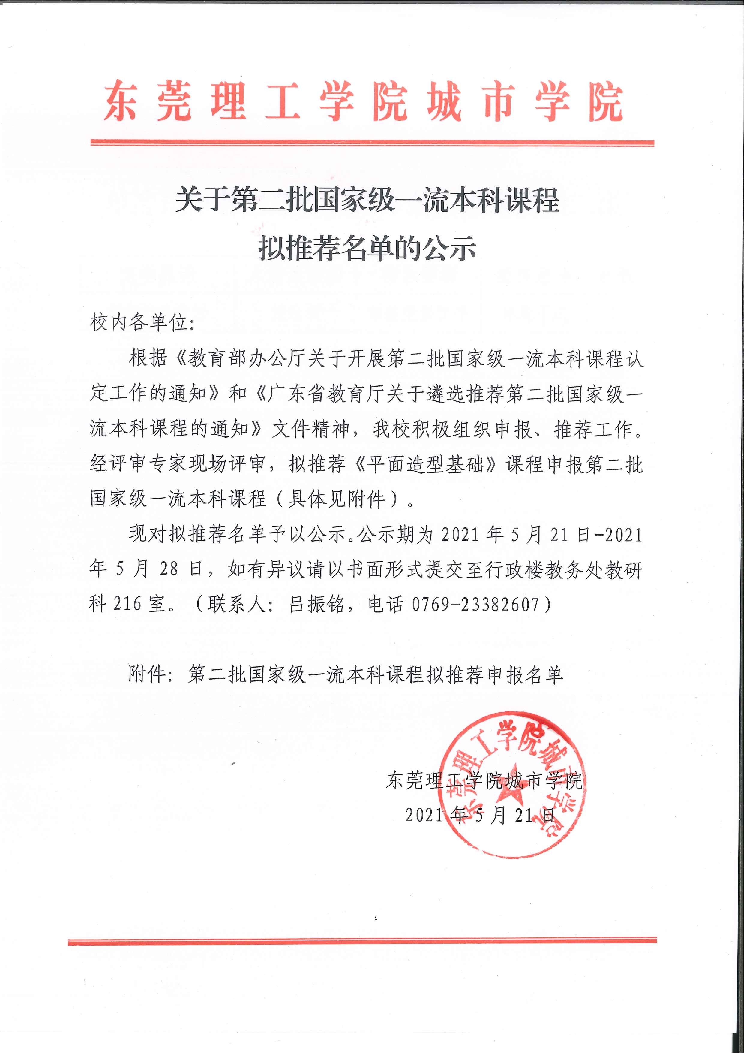东莞理工学院城市学院关于第二批国家级一流本科课程拟推荐名单的公示
