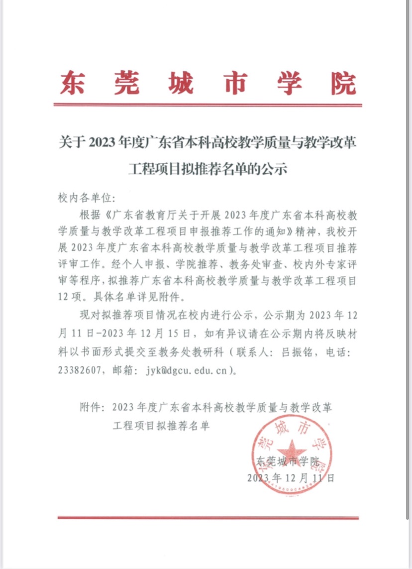 关于2023年度广东省本科高校教学质量与教学改革工程项目拟推荐名单的公示