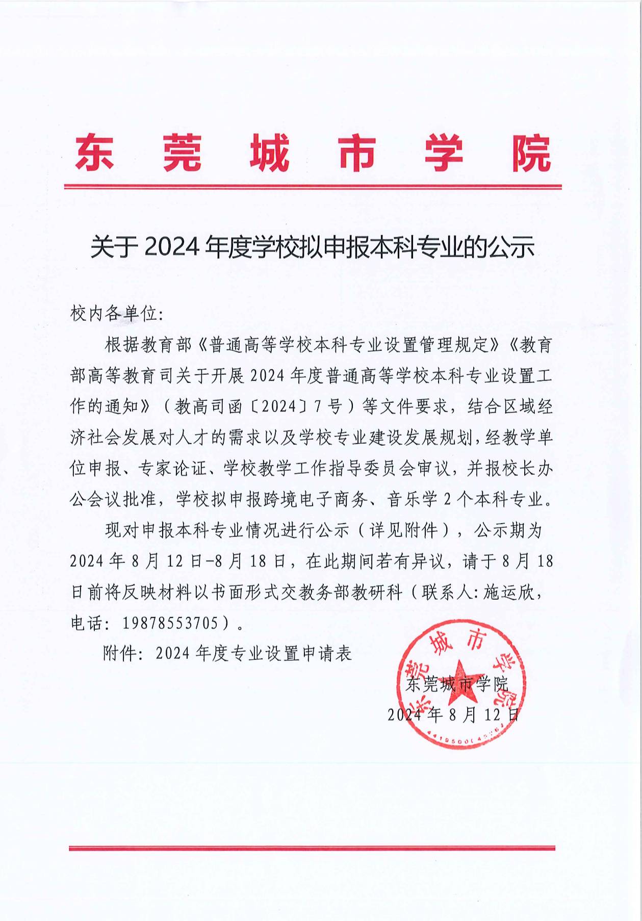 关于2024年度学校拟申报本科专业的公示