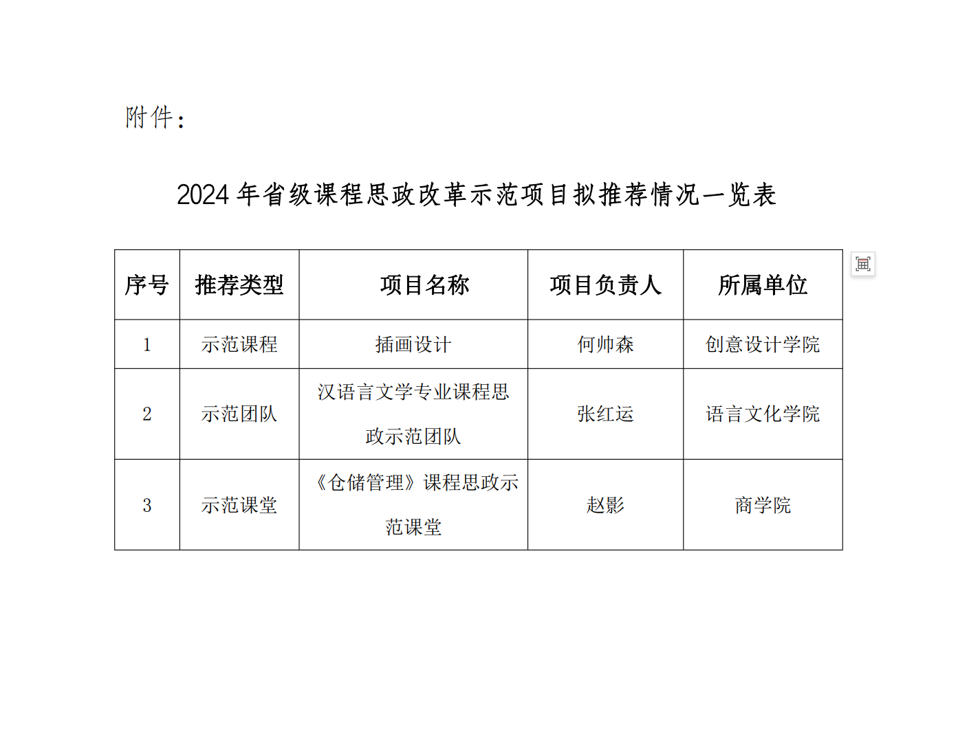 关于2024年省级课程思政改革示范项目申报推荐评审结果的公示