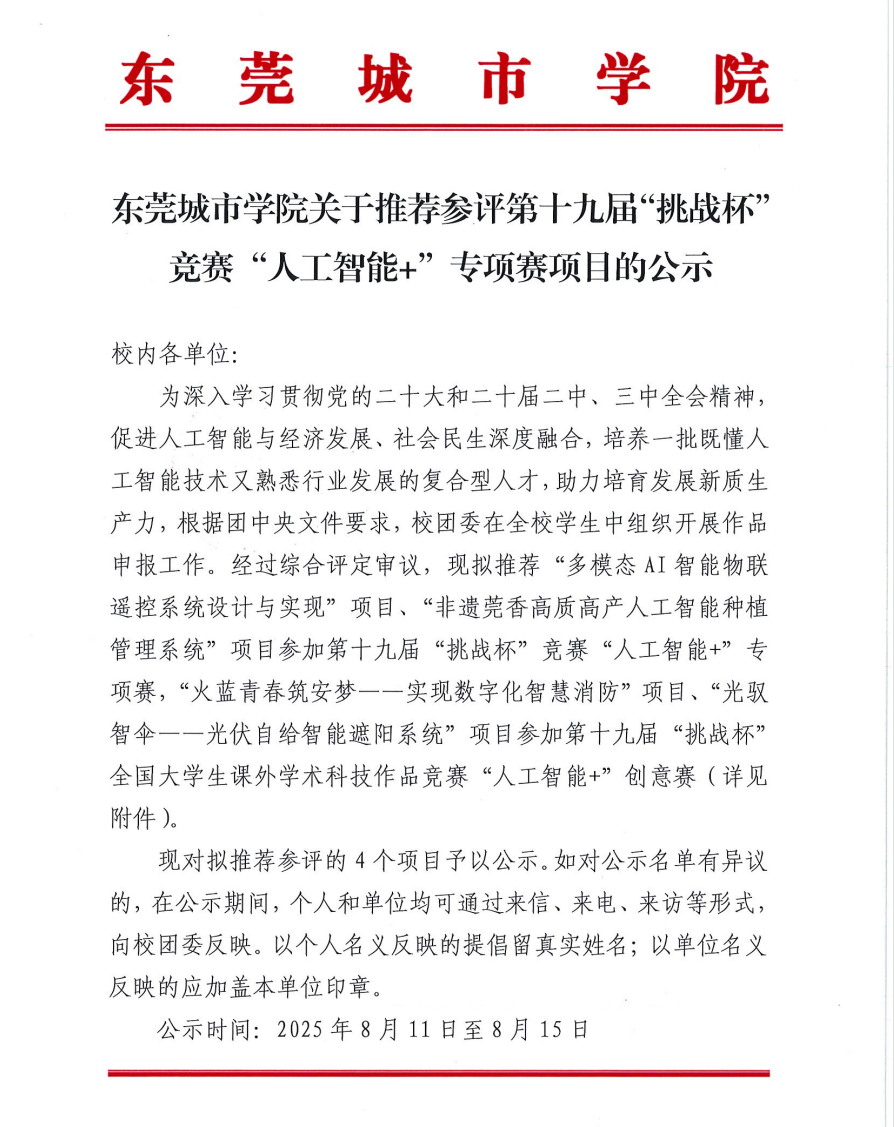 BV伟德官方网站关于推荐参评第十九届“挑战杯”竞赛“人工智能+”专项赛项目的公示